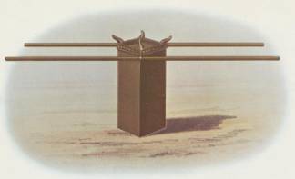 - l’autre avec seulement deux anneaux situés à deux angles opposés de l’autel carré ; les barres sont parallèles à une diagonale de l’autel.