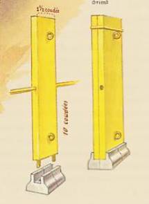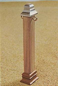 Pour le parvis, les bases des piliers étaient d’airain, et les crochets et baguettes d’attache étaient en argent, les chapiteaux plaqués d’argent (Exode 38:17, 28). Deux représentations sont données ici ; la deuxième est plus précise, mais les crochets devraient être de la même couleur que les chapiteaux.