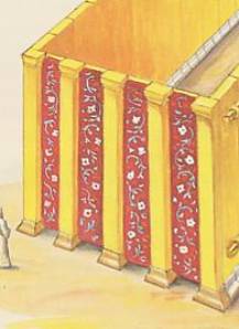 (Exode 26:31) pour le voile entre le lieu saint et le lieu très saint, et pour les dix tapis de fin coton retors (Ex. 26:1) ; ce sont aussi les seuls sur lesquels on trouve deschérubins