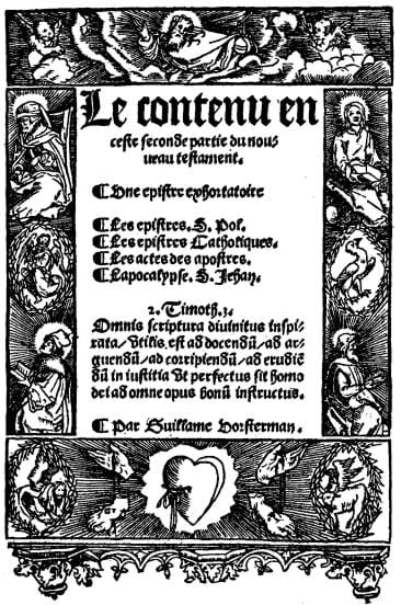 Qui est-ce donc celui qui n’estimera être chose due et convenante à salut d’avoir ce Nouveau Testament en langue vulgaire ? Qui est chose plus nécessaire à vie, non point de ce monde, mais à vie éternelle ? Et qui est-ce qui défendra aux enfants d’avoir, voir et lire le Testament de leur père ?