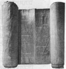 Rouleau de la loi, en hébreu, du 15° siècle qui fait partie de la bibliothèque de la Société biblique britannique et étrangère.